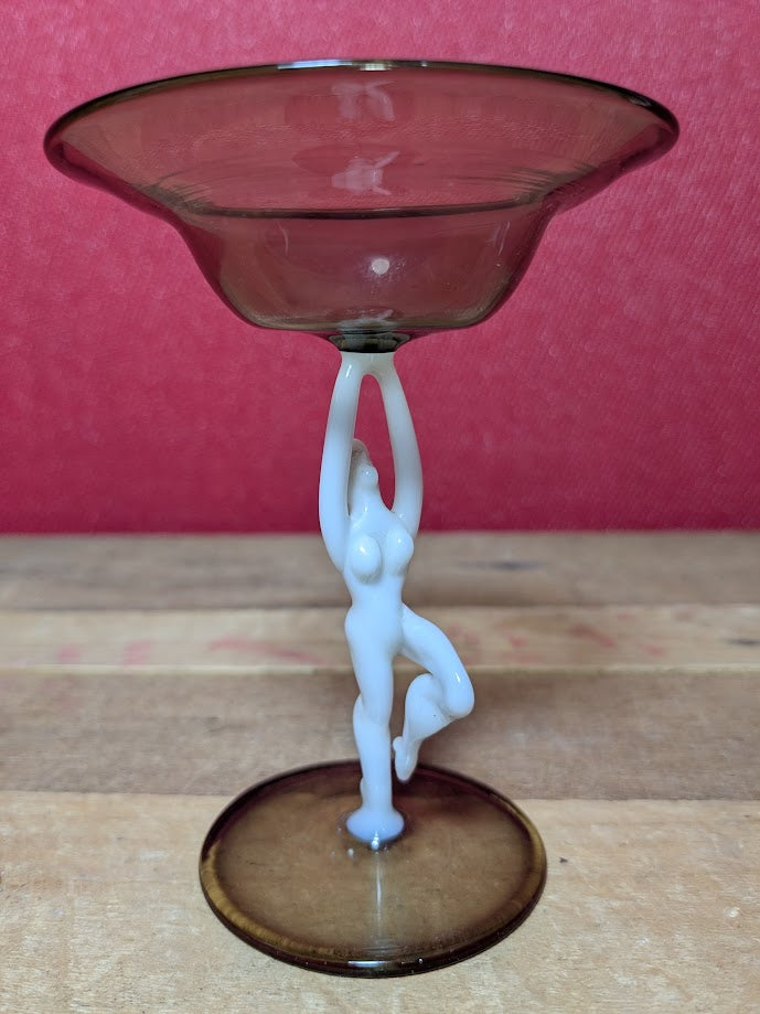 Stunning Art Deco opaque nude spirit glass -designed by Fritz Lampl.