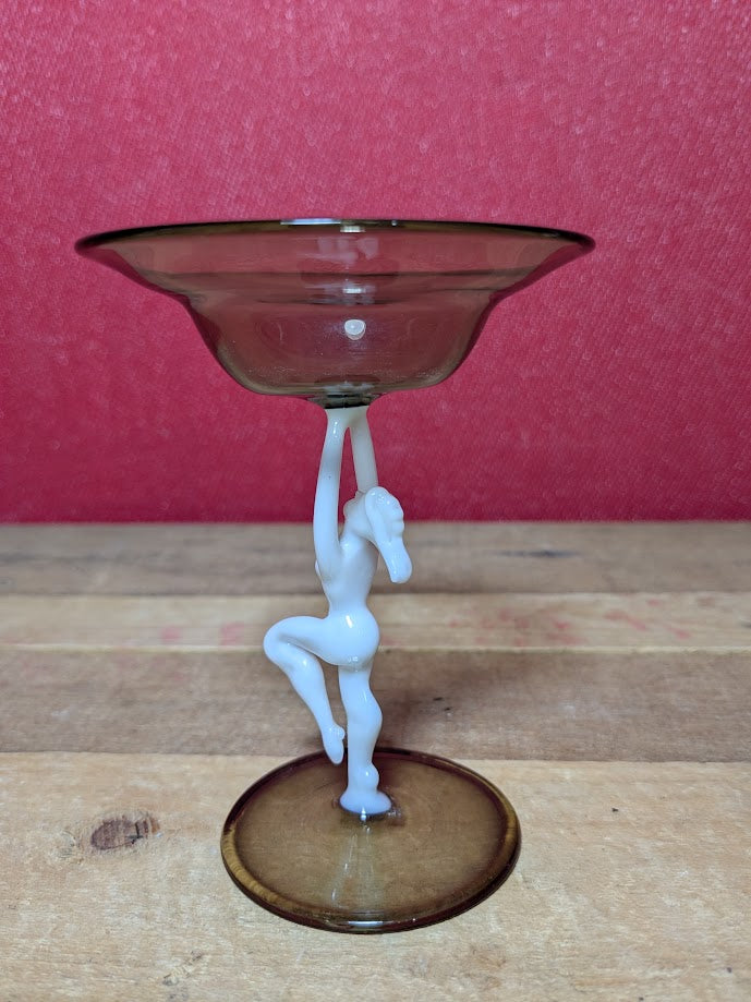 1930's Art Deco Smoke Grey Nude Lady Spirit Glass