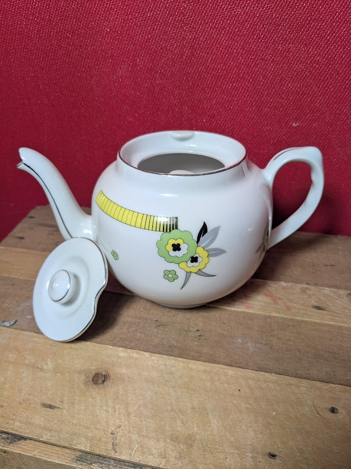 Made in Czechoslovakia - Green, yellow and black art deco style flower design.