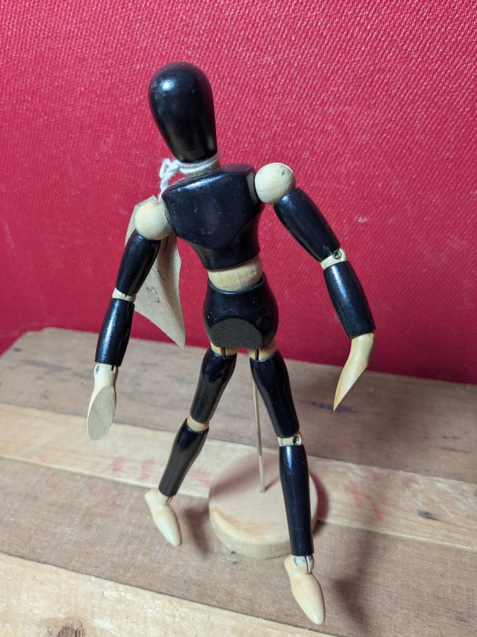 Wooden artists manikin with fully articulated joints.