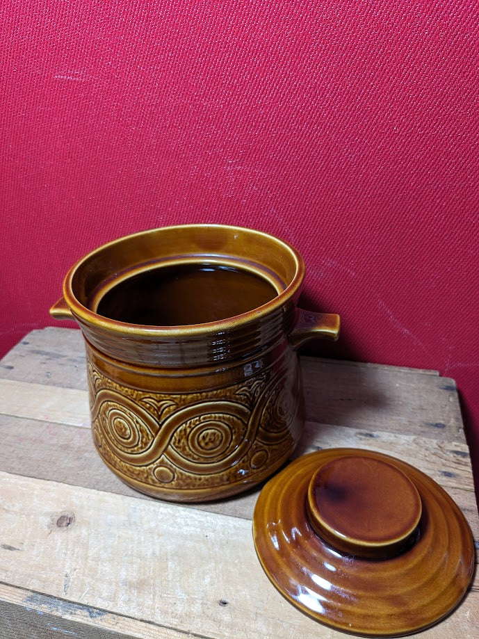 Vintage brown casserole pot, made in England by Ellgreave.