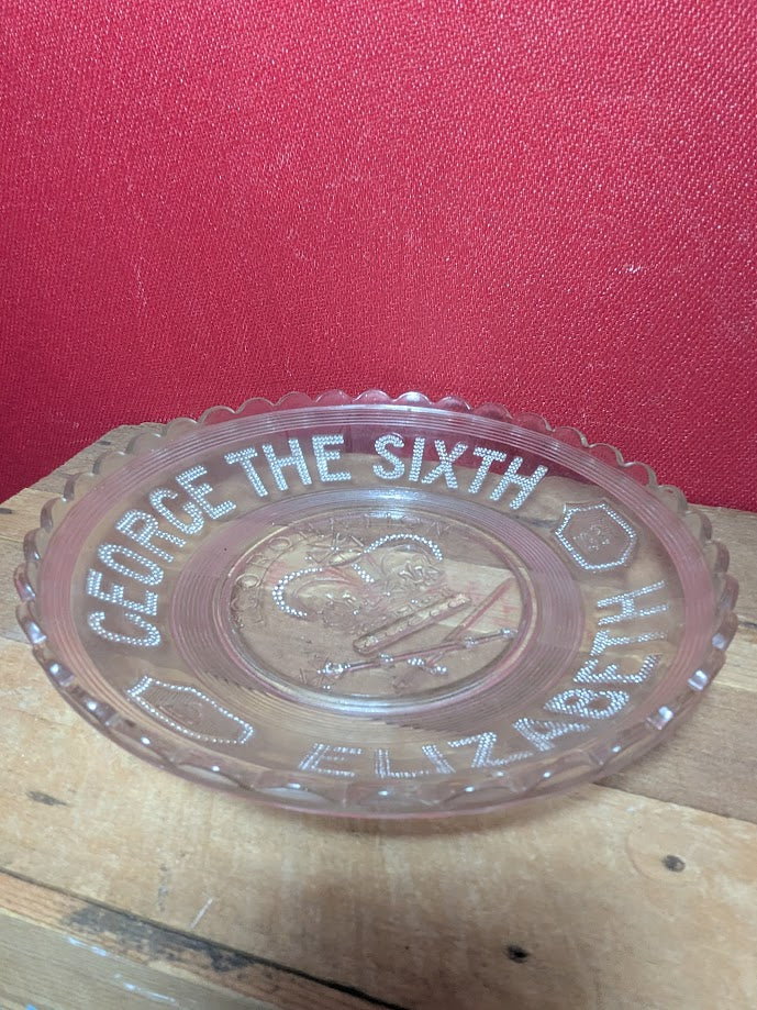 1937 Pressed glass coronation celebration dish.