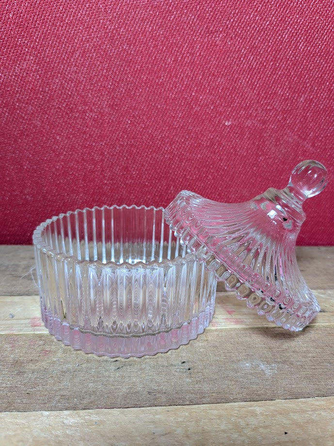 Preloved pressed glass candy jar.