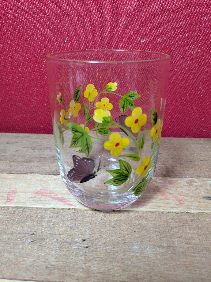 Hand painted glass carafe and glass set.