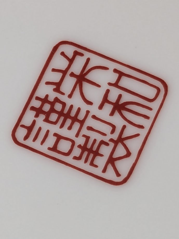 The image displays a red seal with Chinese characters, which read "栄和謹製" (Eihwa Kinsei or Ronghe Jinzhi). This translates to "Made by Eihwa" or "Manufactured by Ronghe," indicating the maker or brand of an item. These types of seals are commonly used in East Asian art and calligraphy to authenticate or sign a piece.