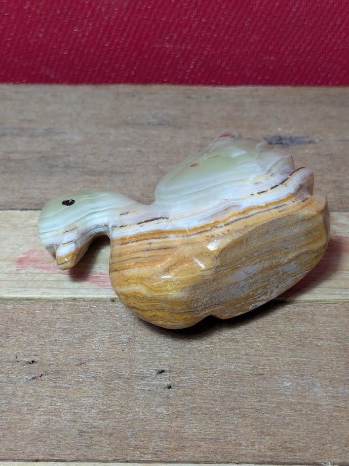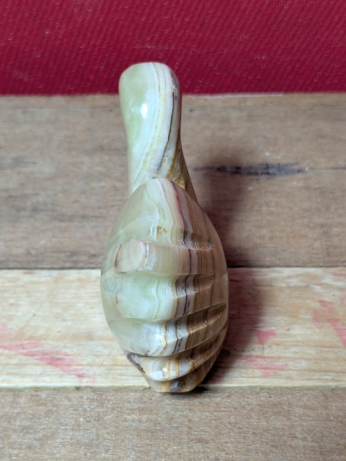 Green and brown Onyx carved duck.