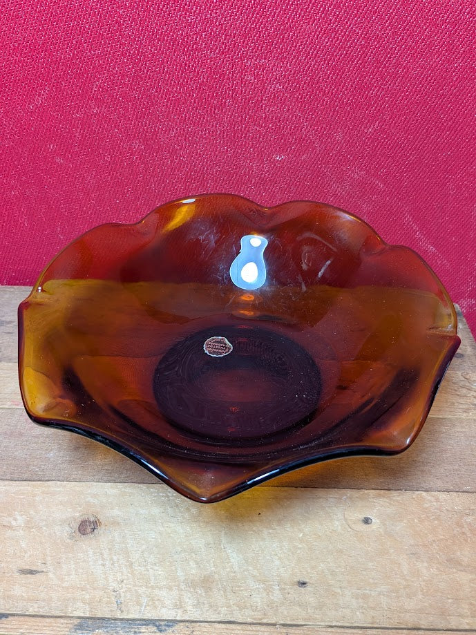 Brown or amber coloured glass bowl - made in England.