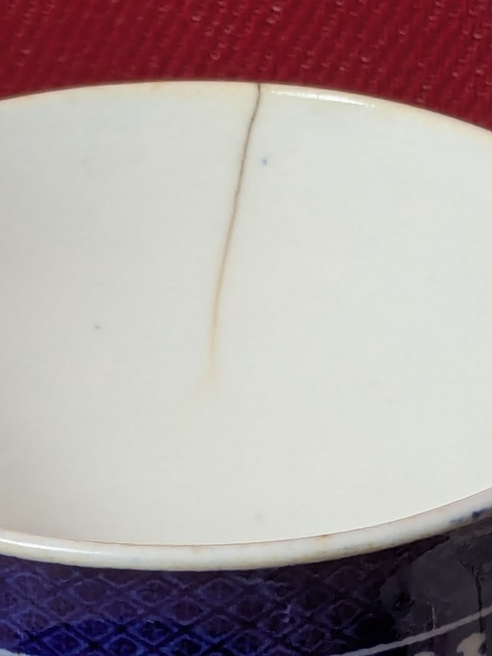 They both have hairline cracks and are unusable but still beautiful to look at, the cobalt blue finish is very bright, they would have been stunning when new.