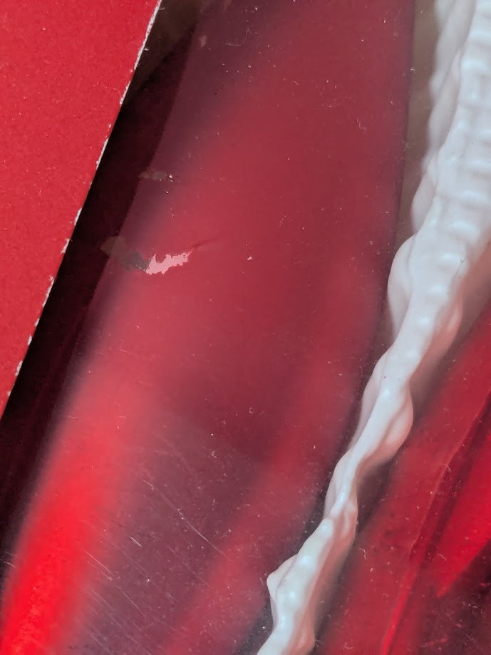 3 Shiny and 2 matt red long glass baubles.