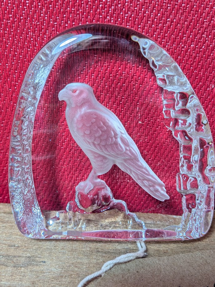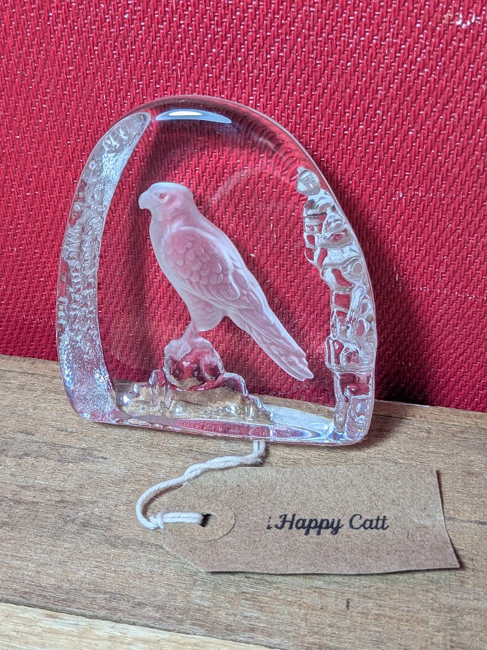 Bird of prey cut into Wedgwood glass.